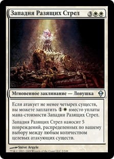 | Rules | If four or more creatures are attacking, you may pay rather than pay this spell's mana cost. Arrow Volley Trap deals 5 damage divided as you choose among any number of target attacking creatures. |