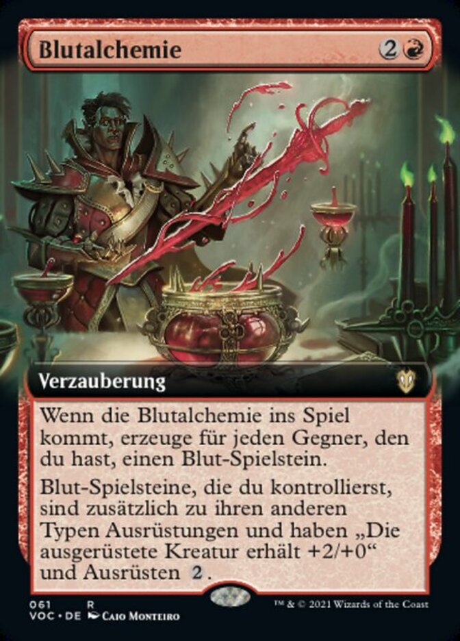 | Rules | When Arterial Alchemy enters the battlefield, create a Blood token for each opponent you have. (It's an artifact with ", , Discard a card, Sacrifice this artifact: Draw a card.") Blood tokens you control are Equipment in addition to their other types and have "Equipped creature gets +2/+0" and equip . |