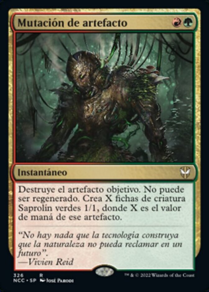 | Rules | Destroy target artifact. It can't be regenerated. Create X 1/1 green Saproling creature tokens, where X is that artifact's mana value. |
