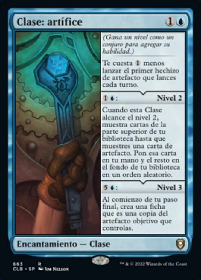 | Rules | (Gain the next level as a sorcery to add its ability.) The first artifact spell you cast each turn costs less to cast. : Level 2 When this Class becomes level 2, reveal cards from the top of your library until you reveal an artifact card. Put that card into your hand and the rest on the bottom of your library in a random order. : Level 3 At the beginning of your end step, create a token that's a copy of target artifact you control. |