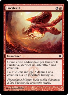 | Rules | As an additional cost to cast this spell, sacrifice an artifact or creature. Artillerize deals 5 damage to any target. |