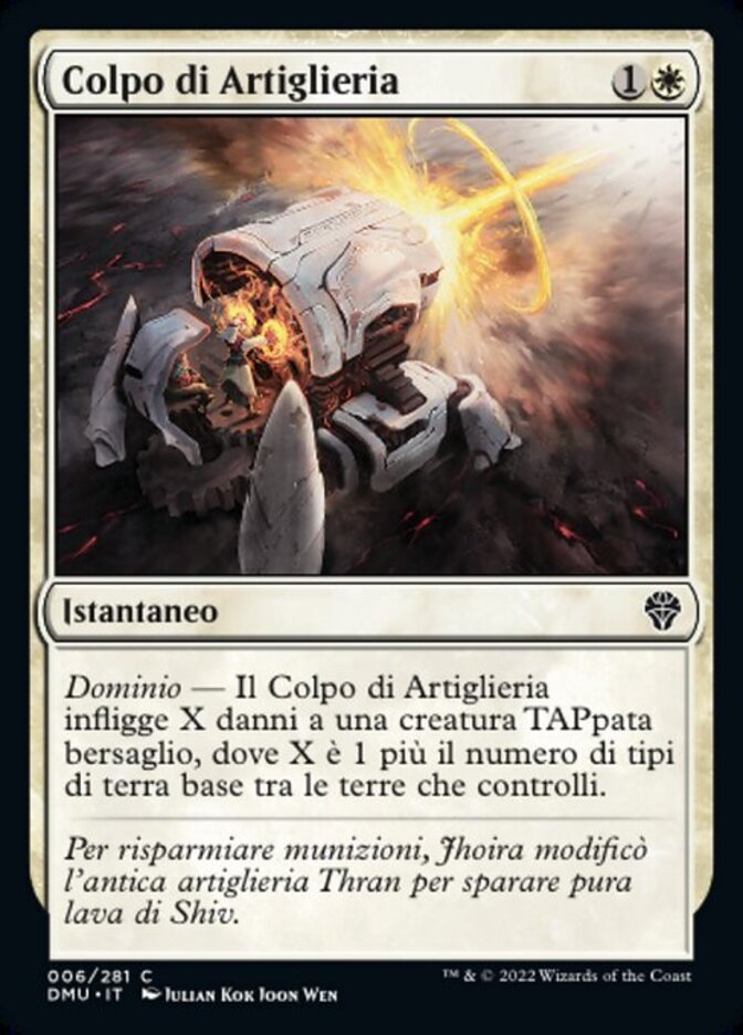 | Rules | Domain—Artillery Blast deals X damage to target tapped creature, where X is 1 plus the number of basic land types among lands you control. |