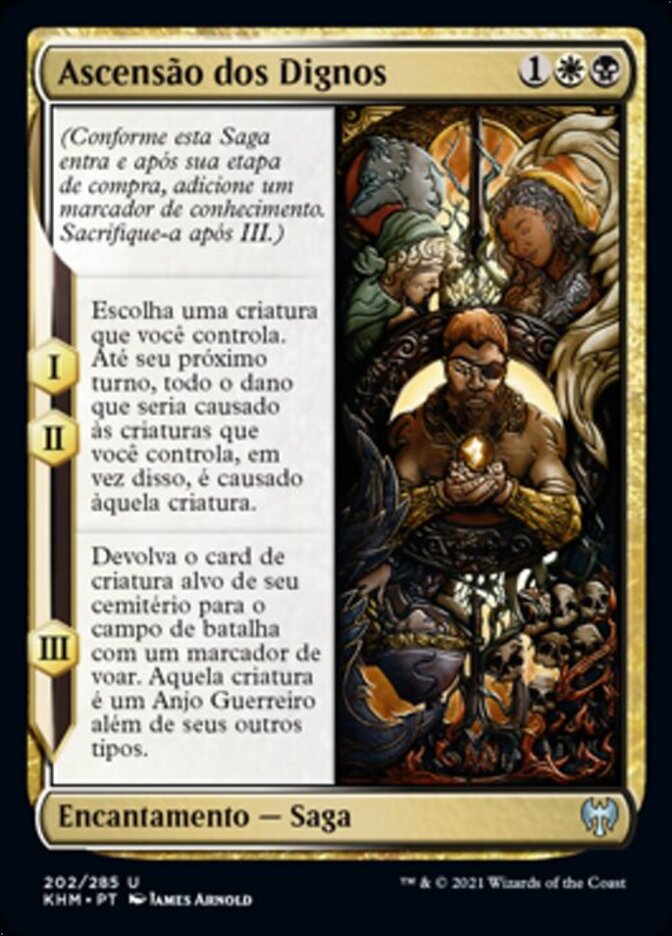 | Rules | (As this Saga enters and after your draw step, add a lore counter. Sacrifice after III.) I, II — Choose a creature you control. Until your next turn, all damage that would be dealt to creatures you control is dealt to that creature instead. III — Return target creature card from your graveyard to the battlefield with a flying counter on it. That creature is an Angel Warrior in addition to its other types. |