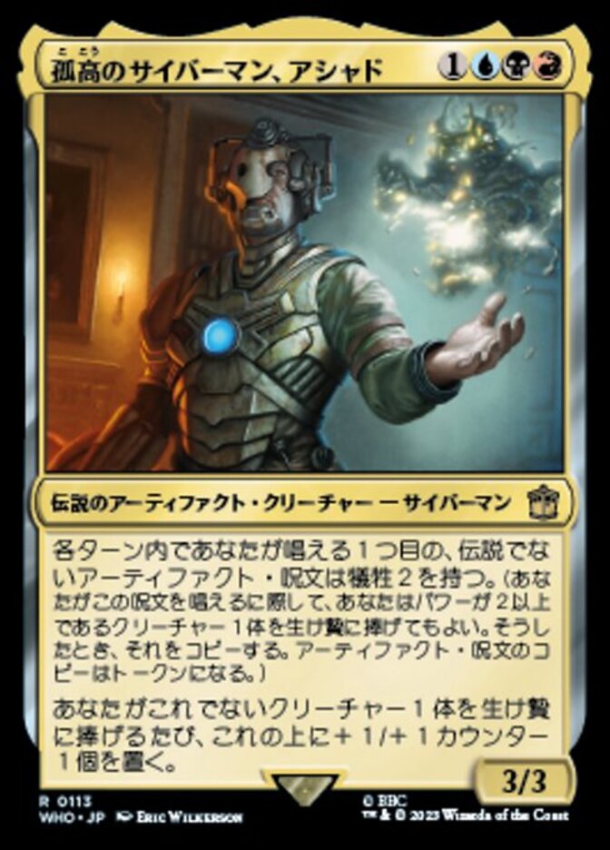 | Rules | The first nonlegendary artifact spell you cast each turn has casualty 2. (As you cast it, you may sacrifice a creature with power 2 or greater. When you do, copy it. A copy of an artifact spell becomes a token.) Whenever you sacrifice another creature, put a +1/+1 counter on Ashad, the Lone Cyberman. |