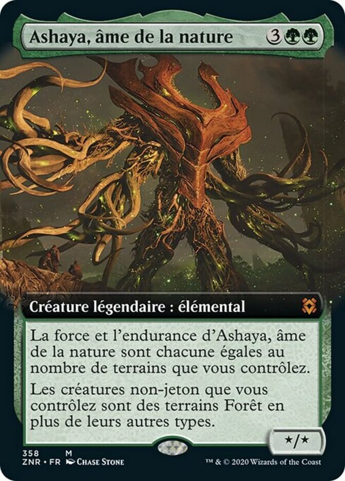 | Rules | Ashaya, Soul of the Wild's power and toughness are each equal to the number of lands you control. Nontoken creatures you control are Forest lands in addition to their other types. (They're still affected by summoning sickness.) |