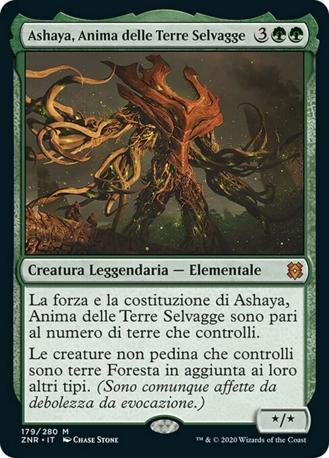 | Rules | Ashaya, Soul of the Wild's power and toughness are each equal to the number of lands you control. Nontoken creatures you control are Forest lands in addition to their other types. (They're still affected by summoning sickness.) |