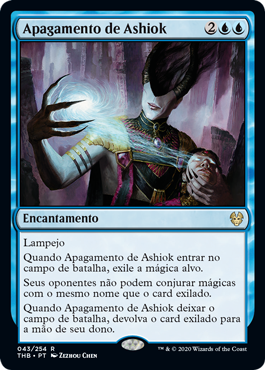 | Rules | Flash When Ashiok's Erasure enters the battlefield, exile target spell. Your opponents can't cast spells with the same name as the exiled card. When Ashiok's Erasure leaves the battlefield, return the exiled card to its owner's hand. |