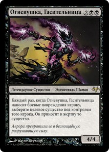 | Rules | Whenever Ashling, the Extinguisher deals combat damage to a player, choose target creature that player controls. The player sacrifices that creature. |