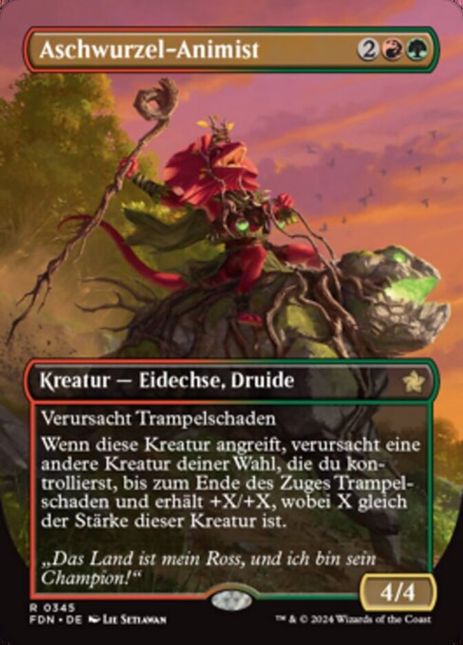 | Rules | Trample When this creature attacks, another target creature you control gains trample and gets +X/+X until end of turn, where X is this creature's power. |
