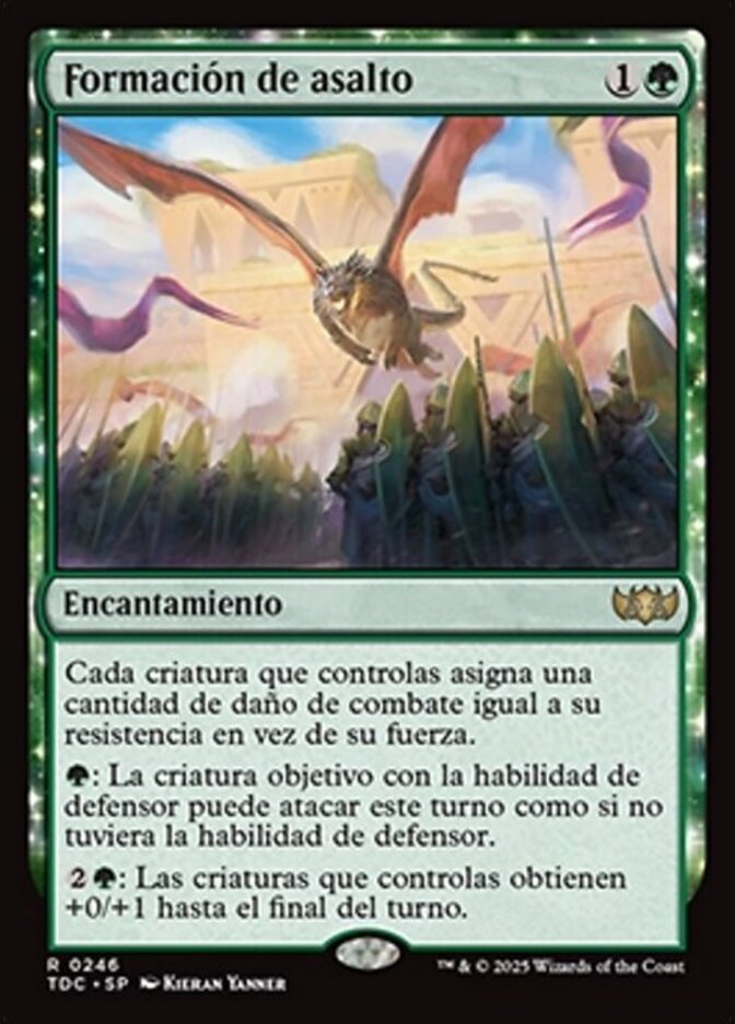 | Rules | Each creature you control assigns combat damage equal to its toughness rather than its power. : Target creature with defender can attack this turn as though it didn't have defender. : Creatures you control get +0/+1 until end of turn. |