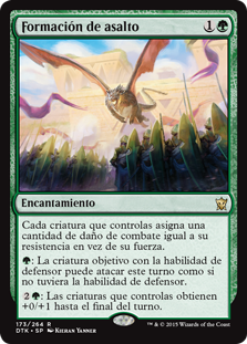 | Rules | Each creature you control assigns combat damage equal to its toughness rather than its power. : Target creature with defender can attack this turn as though it didn't have defender. : Creatures you control get +0/+1 until end of turn. |