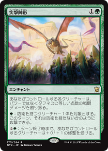 | Rules | Each creature you control assigns combat damage equal to its toughness rather than its power. : Target creature with defender can attack this turn as though it didn't have defender. : Creatures you control get +0/+1 until end of turn. |