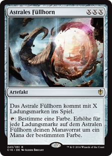 | Rules | Astral Cornucopia enters the battlefield with X charge counters on it. : Choose a color. Add one mana of that color for each charge counter on Astral Cornucopia. |