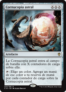 | Rules | Astral Cornucopia enters the battlefield with X charge counters on it. : Choose a color. Add one mana of that color for each charge counter on Astral Cornucopia. |