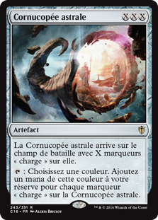 | Rules | Astral Cornucopia enters the battlefield with X charge counters on it. : Choose a color. Add one mana of that color for each charge counter on Astral Cornucopia. |