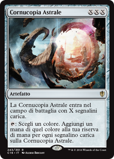 | Rules | Astral Cornucopia enters the battlefield with X charge counters on it. : Choose a color. Add one mana of that color for each charge counter on Astral Cornucopia. |