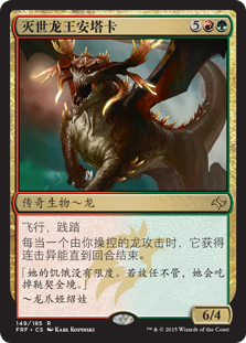 | Rules | Flying, trample Whenever a Dragon you control attacks, it gains double strike until end of turn. |