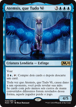 | Rules | Flying , : Draw two cards, then discard a card. Whenever Atemsis, All-Seeing deals damage to an opponent, you may reveal your hand. If cards with at least six different mana values are revealed this way, that player loses the game. |