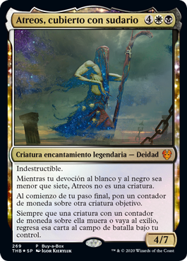 | Rules | Indestructible As long as your devotion to white and black is less than seven, Athreos isn't a creature. At the beginning of your end step, put a coin counter on another target creature. Whenever a creature with a coin counter on it dies or is put into exile, return that card to the battlefield under your control. |