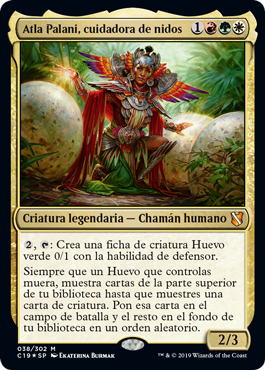 | Rules | , : Create a 0/1 green Egg creature token with defender. Whenever an Egg you control dies, reveal cards from the top of your library until you reveal a creature card. Put that card onto the battlefield and the rest on the bottom of your library in a random order. |