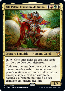| Rules | , : Create a 0/1 green Egg creature token with defender. Whenever an Egg you control dies, reveal cards from the top of your library until you reveal a creature card. Put that card onto the battlefield and the rest on the bottom of your library in a random order. |