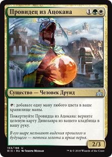 | Rules | : Add one mana of any color. Sacrifice Atzocan Seer: Return target Dinosaur card from your graveyard to your hand. |