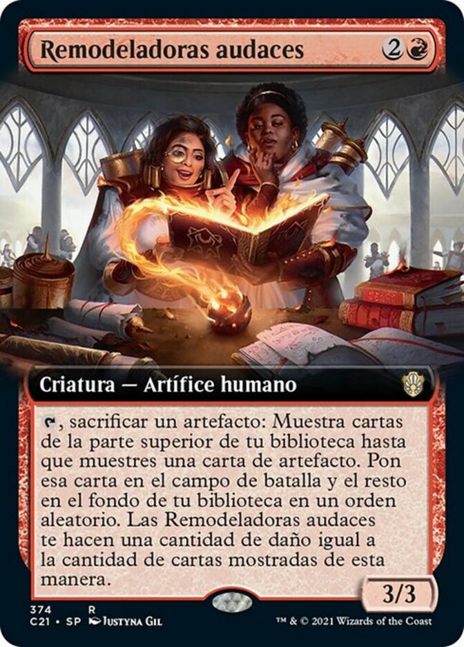 | Rules | , Sacrifice an artifact: Reveal cards from the top of your library until you reveal an artifact card. Put that card onto the battlefield and the rest on the bottom of your library in a random order. Audacious Reshapers deals damage to you equal to the number of cards revealed this way. |