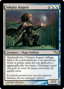 | Rules | Whenever Augury Adept deals combat damage to a player, reveal the top card of your library and put that card into your hand. You gain life equal to its mana value. |