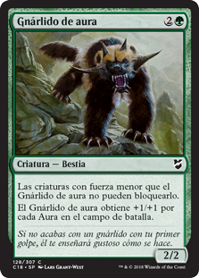 | Rules | Creatures with power less than Aura Gnarlid's power can't block it. Aura Gnarlid gets +1/+1 for each Aura on the battlefield. |