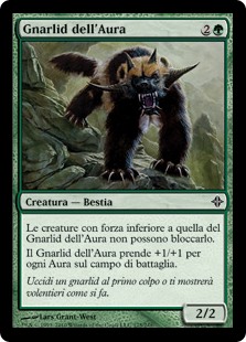 | Rules | Creatures with power less than Aura Gnarlid's power can't block it. Aura Gnarlid gets +1/+1 for each Aura on the battlefield. |
