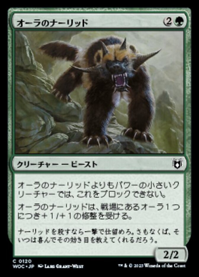 | Rules | Creatures with power less than Aura Gnarlid's power can't block it. Aura Gnarlid gets +1/+1 for each Aura on the battlefield. |
