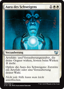 | Rules | Artifact and enchantment spells your opponents cast cost more to cast. Sacrifice Aura of Silence: Destroy target artifact or enchantment. |