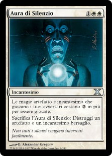 | Rules | Artifact and enchantment spells your opponents cast cost more to cast. Sacrifice Aura of Silence: Destroy target artifact or enchantment. |