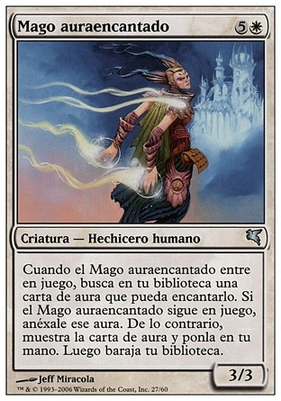 | Rules | When Auratouched Mage enters the battlefield, search your library for an Aura card that could enchant it. If Auratouched Mage is still on the battlefield, put that Aura card onto the battlefield attached to it. Otherwise, reveal the Aura card and put it into your hand. Then shuffle. |
