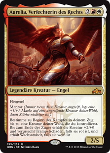 | Rules | Flying Mentor (Whenever this creature attacks, put a +1/+1 counter on target attacking creature with lesser power.) At the beginning of combat on your turn, choose up to one target creature you control. Until end of turn, that creature gets +2/+0, gains trample if it's red, and gains vigilance if it's white. |