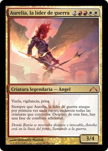 | Rules | Flying, vigilance, haste Whenever Aurelia, the Warleader attacks for the first time each turn, untap all creatures you control. After this phase, there is an additional combat phase. |