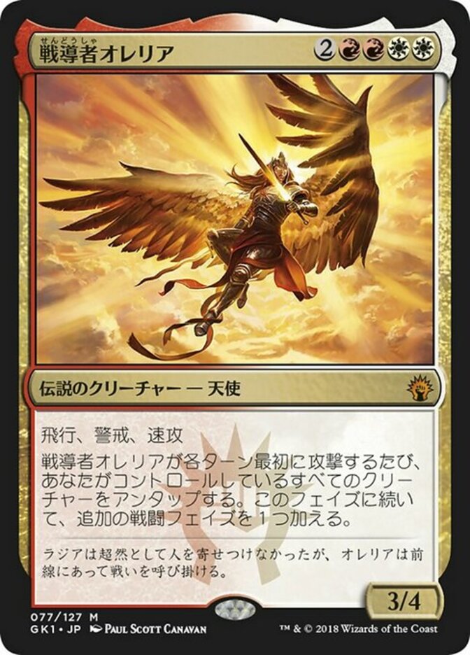 | Rules | Flying, vigilance, haste Whenever Aurelia, the Warleader attacks for the first time each turn, untap all creatures you control. After this phase, there is an additional combat phase. |