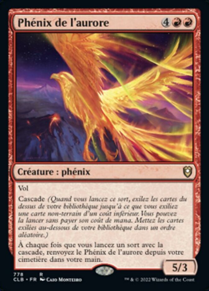 | Rules | Flying Cascade (When you cast this spell, exile cards from the top of your library until you exile a nonland card that costs less. You may cast it without paying its mana cost. Put the exiled cards on the bottom of your library in a random order.) Whenever you cast a spell with cascade, return Aurora Phoenix from your graveyard to your hand. |
