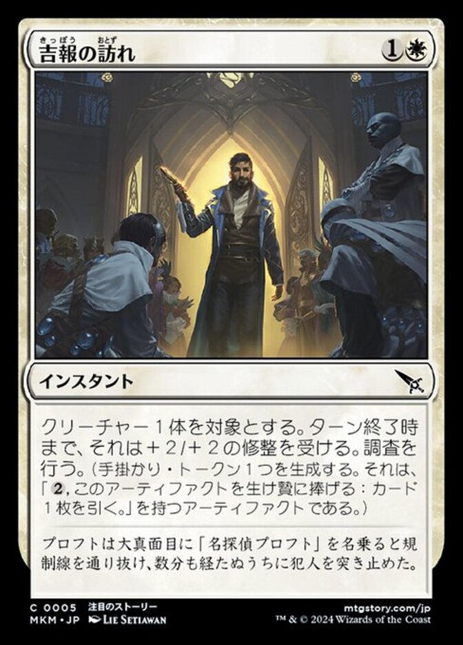 | Rules | Target creature gets +2/+2 until end of turn. Investigate. (Create a Clue token. It's an artifact with ", Sacrifice this artifact: Draw a card.") |