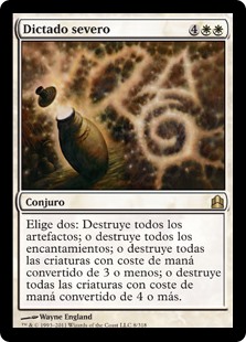 | Rules | Choose two — • Destroy all artifacts. • Destroy all enchantments. • Destroy all creatures with mana value 3 or less. • Destroy all creatures with mana value 4 or greater. |
