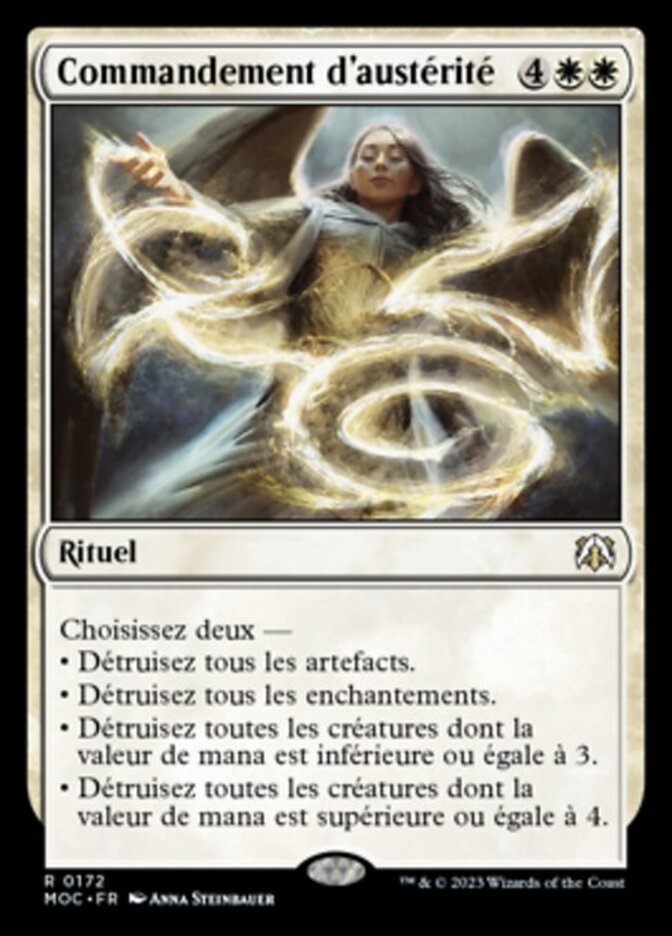 | Rules | Choose two — • Destroy all artifacts. • Destroy all enchantments. • Destroy all creatures with mana value 3 or less. • Destroy all creatures with mana value 4 or greater. |