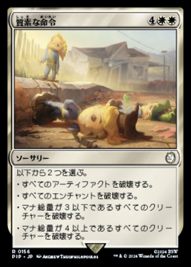 | Rules | Choose two — • Destroy all artifacts. • Destroy all enchantments. • Destroy all creatures with mana value 3 or less. • Destroy all creatures with mana value 4 or greater. |