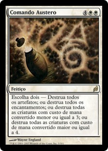 | Rules | Choose two — • Destroy all artifacts. • Destroy all enchantments. • Destroy all creatures with mana value 3 or less. • Destroy all creatures with mana value 4 or greater. |
