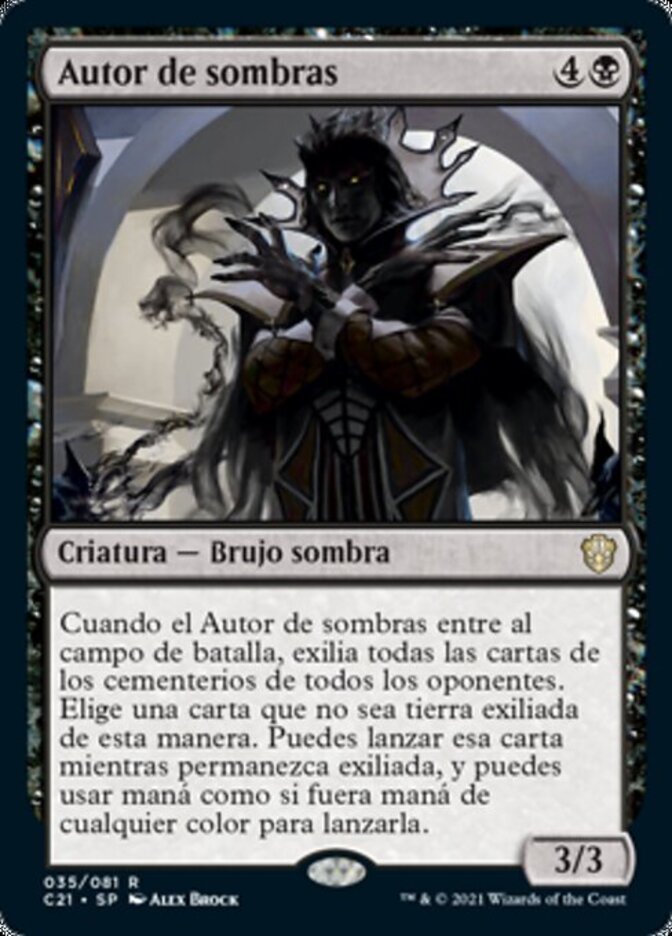 | Rules | When Author of Shadows enters the battlefield, exile all opponents' graveyards. Choose a nonland card exiled this way. You may cast that card for as long as it remains exiled, and you may spend mana as though it were mana of any color to cast that spell. |