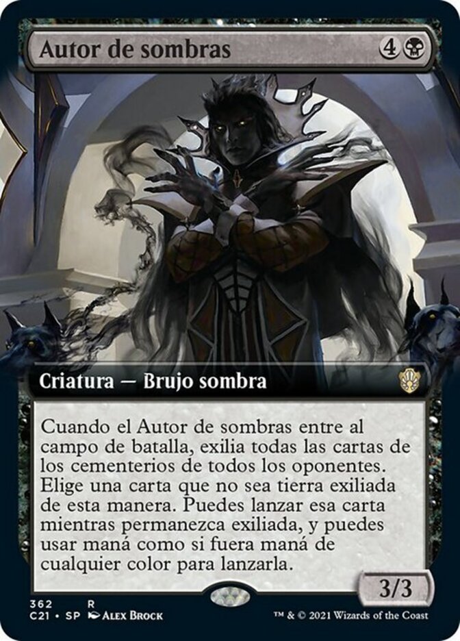 | Rules | When Author of Shadows enters the battlefield, exile all opponents' graveyards. Choose a nonland card exiled this way. You may cast that card for as long as it remains exiled, and you may spend mana as though it were mana of any color to cast that spell. |