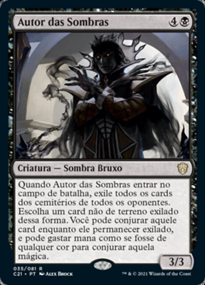 | Rules | When Author of Shadows enters the battlefield, exile all opponents' graveyards. Choose a nonland card exiled this way. You may cast that card for as long as it remains exiled, and you may spend mana as though it were mana of any color to cast that spell. |