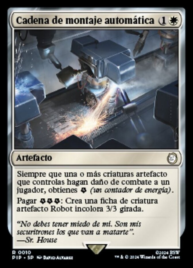 | Rules | Whenever one or more artifact creatures you control deal combat damage to a player, you get (an energy counter). Pay : Create a tapped 3/3 colorless Robot artifact creature token. |