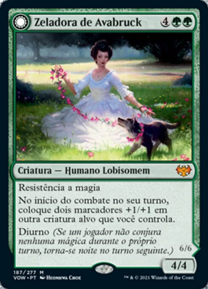 | Rules | Hexproof At the beginning of combat on your turn, put two +1/+1 counters on another target creature you control. Daybound (If a player casts no spells during their own turn, it becomes night next turn.) // Hexproof Other permanents you control have hexproof. At the beginning of combat on your turn, put two +1/+1 counters on each creature you control. Nightbound (If a player casts at least two spells during their own turn, it becomes day next turn.) |