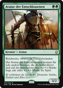 | Rules | Reach, trample Avatar of the Resolute enters the battlefield with a +1/+1 counter on it for each other creature you control with a +1/+1 counter on it. |