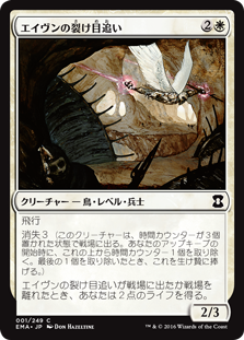 | Rules | Flying Vanishing 3 (This creature enters the battlefield with three time counters on it. At the beginning of your upkeep, remove a time counter from it. When the last is removed, sacrifice it.) When Aven Riftwatcher enters or leaves the battlefield, you gain 2 life. |